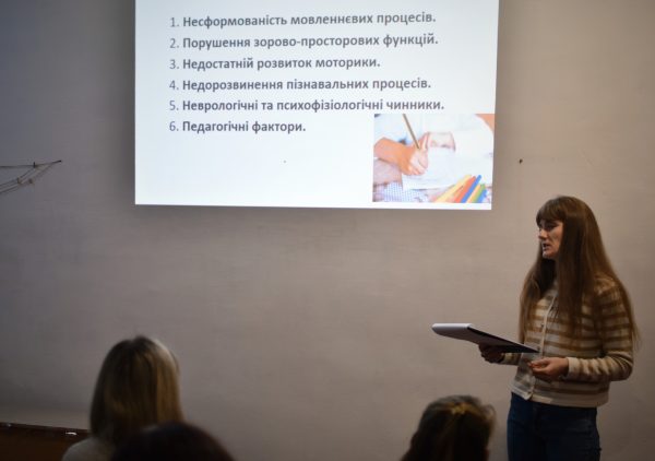 У теоретичному блоці учасники дізналися про основні прояви дислексії та дисграфії; роль психолога у комплексній підтримці дитини – робота з тривожністю, корекція зорового та оптико-просторового сприймання, формування впевненості у власних силах.