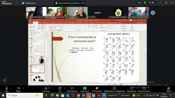 Учасники уроку мали можливість практично опрацювати алфавіт та базові жести комунікації у різних соціальних ситуаціях, а також отримали корисні поради для спілкування з людьми з порушеннями слуху, які стануть у нагоді не лише сурдоперекладачам, але й фахівцям, що працюють з дітьми. Наприклад, бажано одягатися у темний одяг, щоб жести були більш помітні, або – варто уникати яскравого манікюру, який може відволікати.